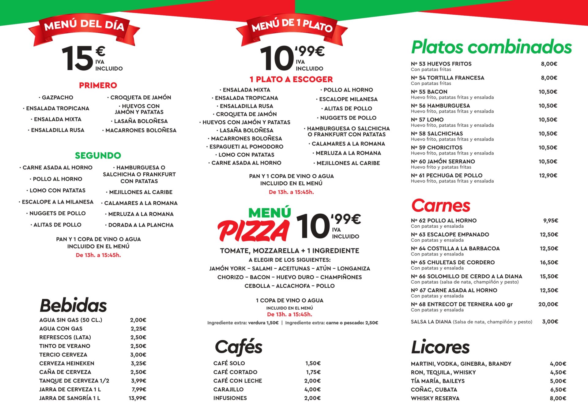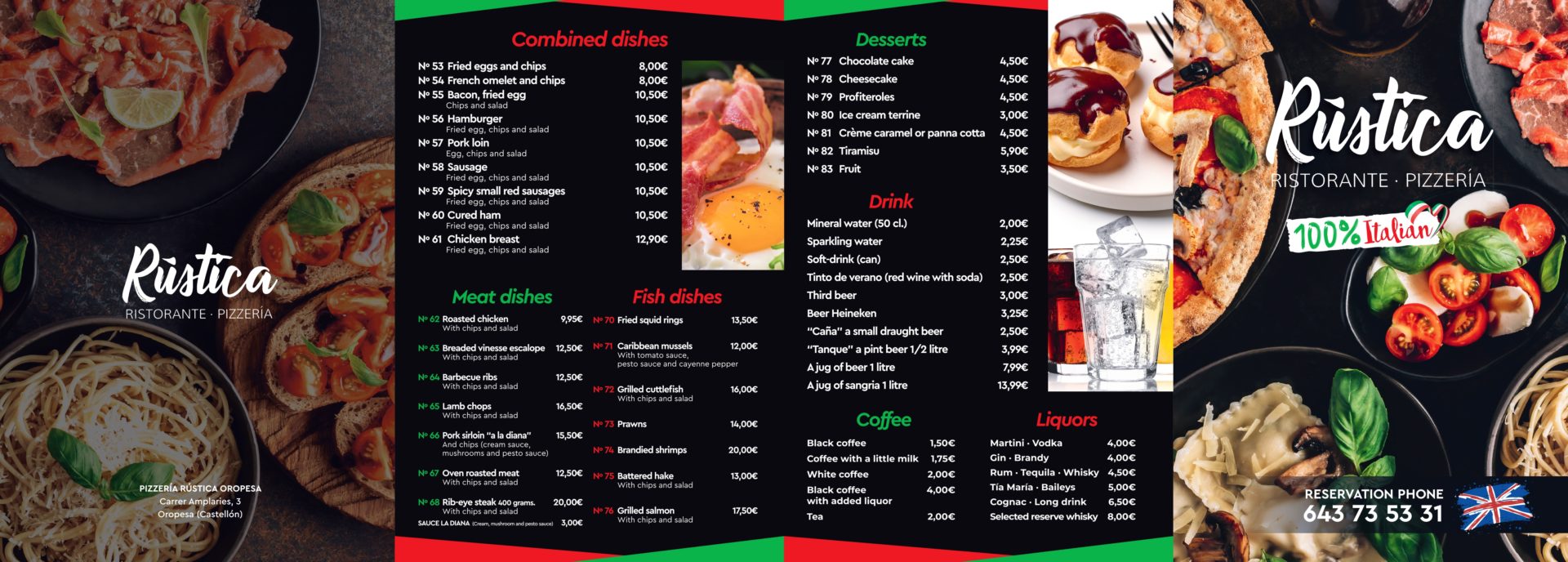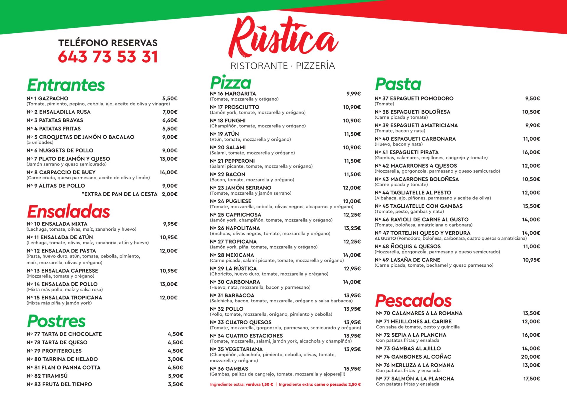 Carta Pizzería Rústica Oropesa del Mar